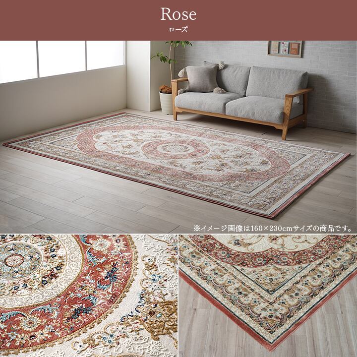 アイボリーホワイトベースで可愛らしいクラシック柄のウィルトンラグ。